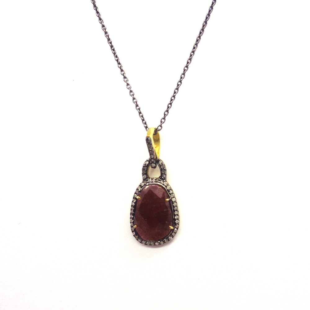 Pink Sapphire diamond 925 Sterling silver Necklace with 18kgold plated and Black Rhodium. A nice look delicacy Pendant Necklace, Natural diamond used for your price range, a love and unique designs for gift for your lover and friends, We use the silver Lead, Nickel, cadmium free, tested in lab.