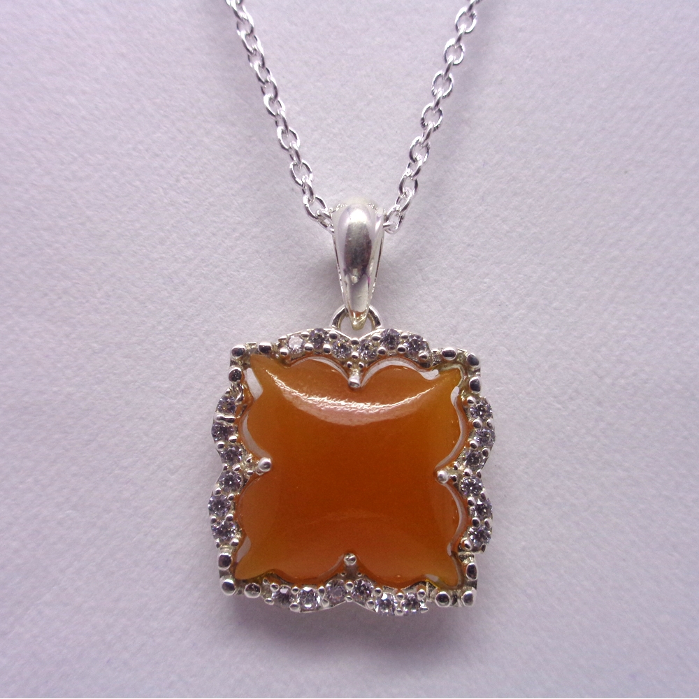 - Jaipur handcraft Amber zade silver Pendant Necklace,