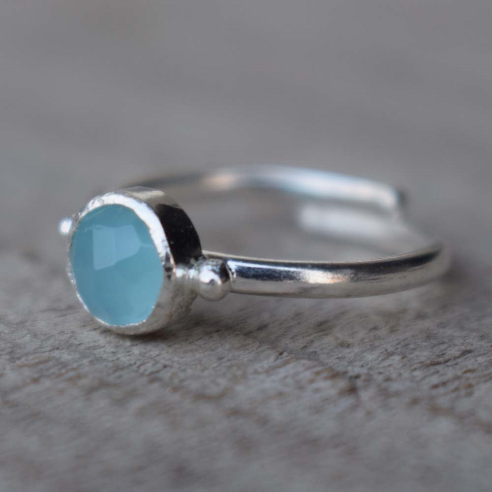 Stackable Designer Ring Natural Acqua Chalcedony Ring Solid