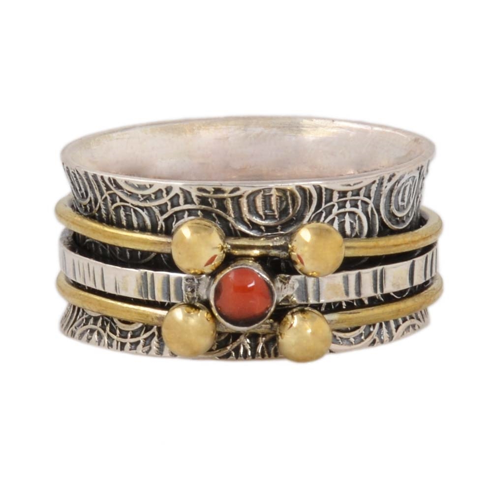Mix Metal Ball Coral Spinner Ring