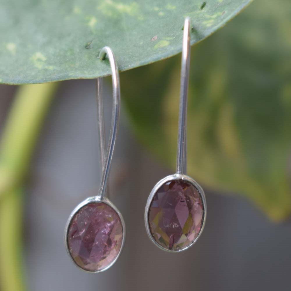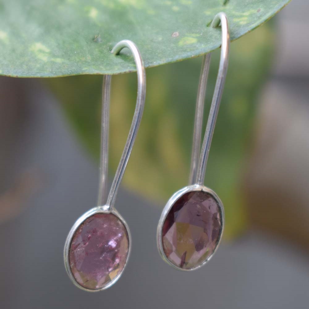 PINK TURMALINE Oval Shape Delicate Design Handmade Silver Earring