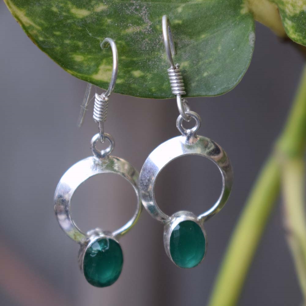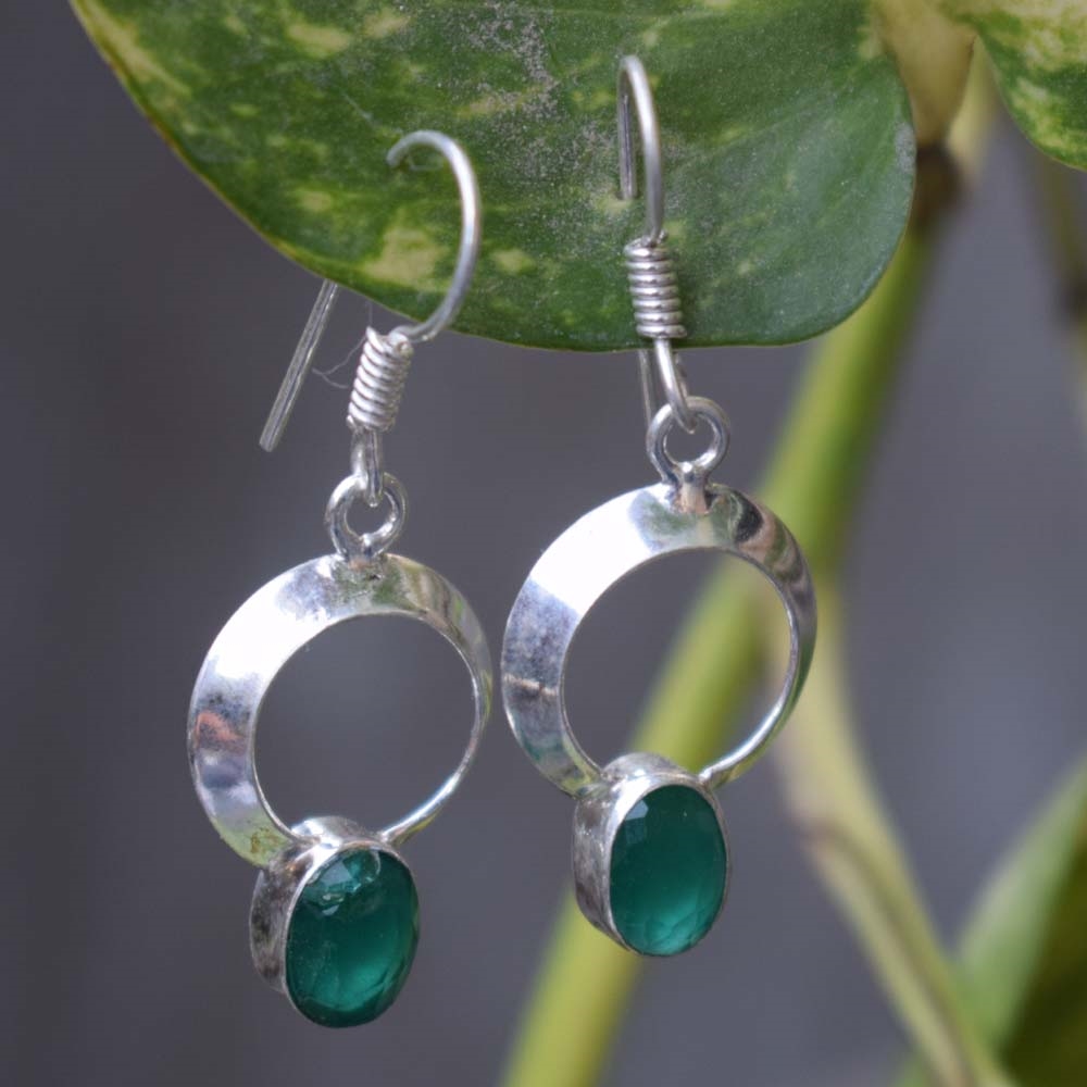 GREEN ONYX Gemstone Handcrafted 925 Silver Earring