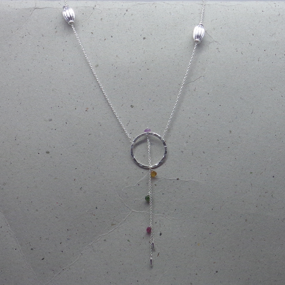 - Amethyst, Citrine, Garnet, Peridot Teardrop Stone Lariat Necklace, Love the multi stone hammered hoop necklace-they go great together