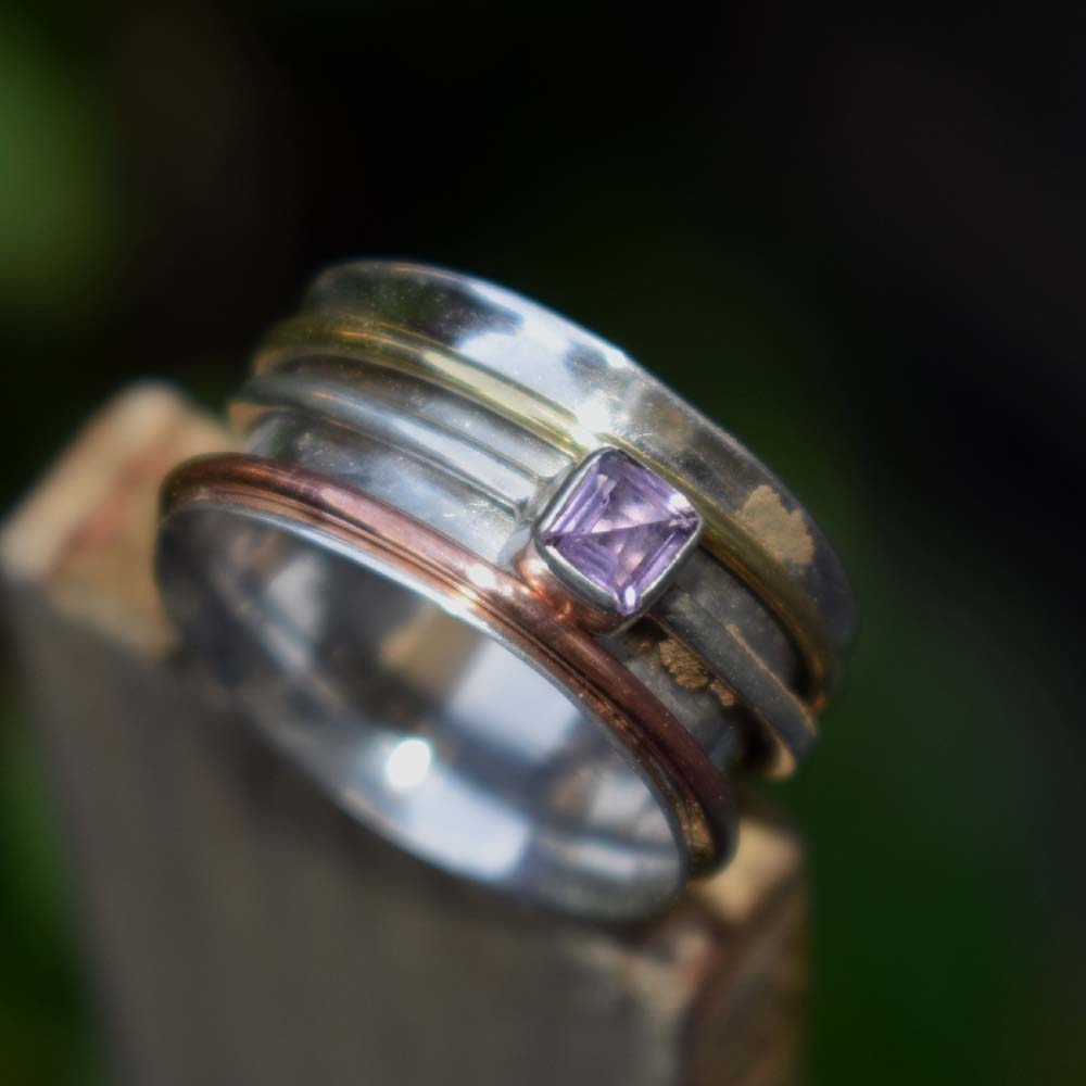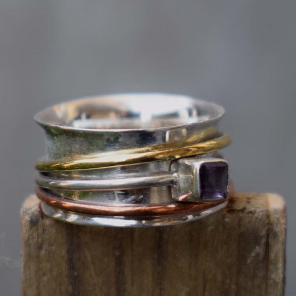 Amethyst Square Cut Stone Silver Spinner Ring