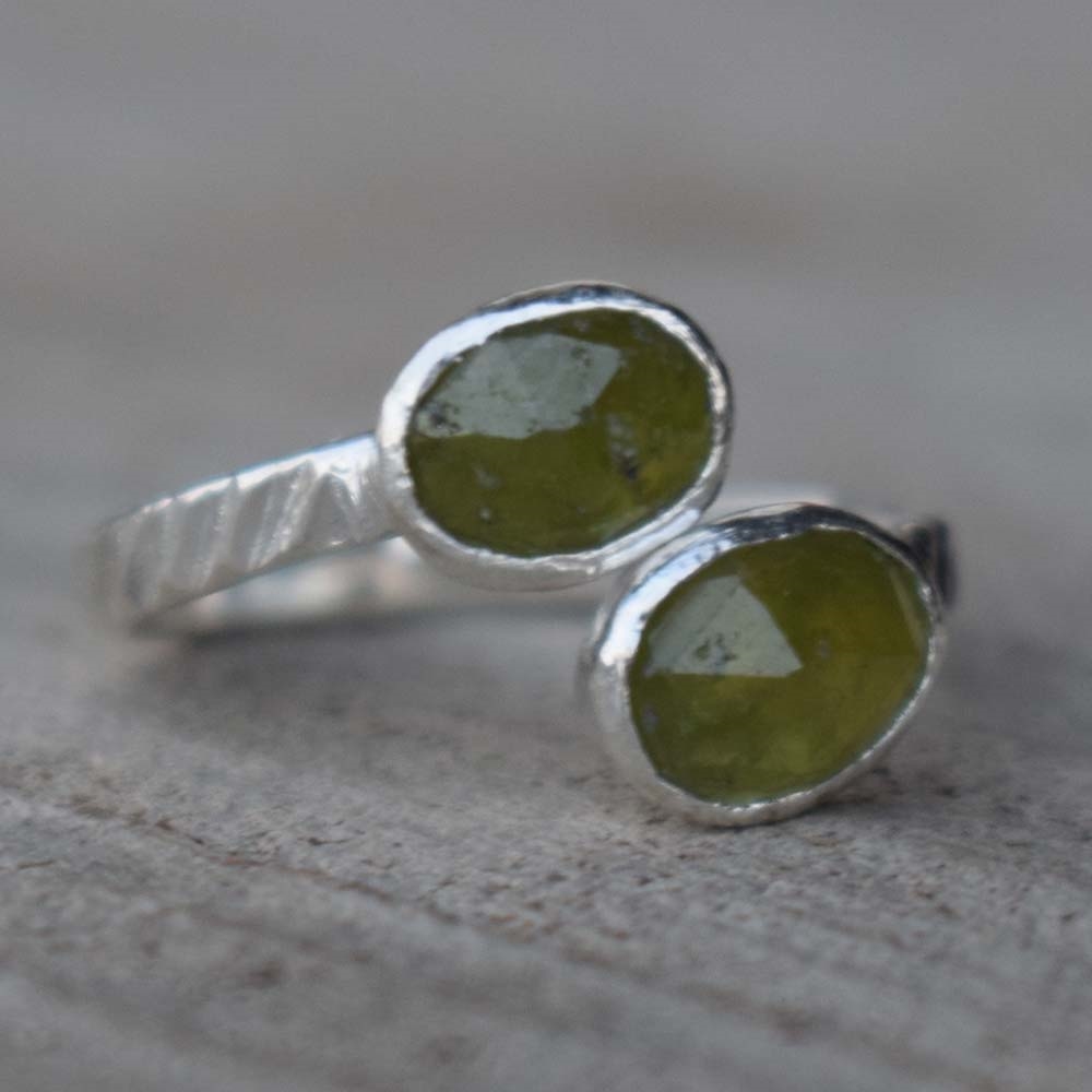 Green Garnet Ring Solid 925 Sterling Silver Ring Statement Rings Gift For Her