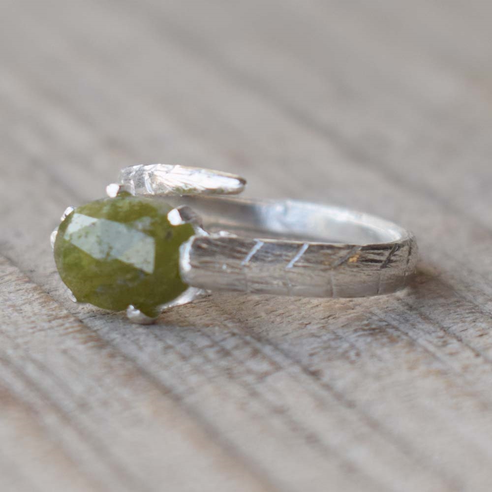 Green Garnet Ring Solid 925 Sterling Silver Ring Statement Rings Gift For Her