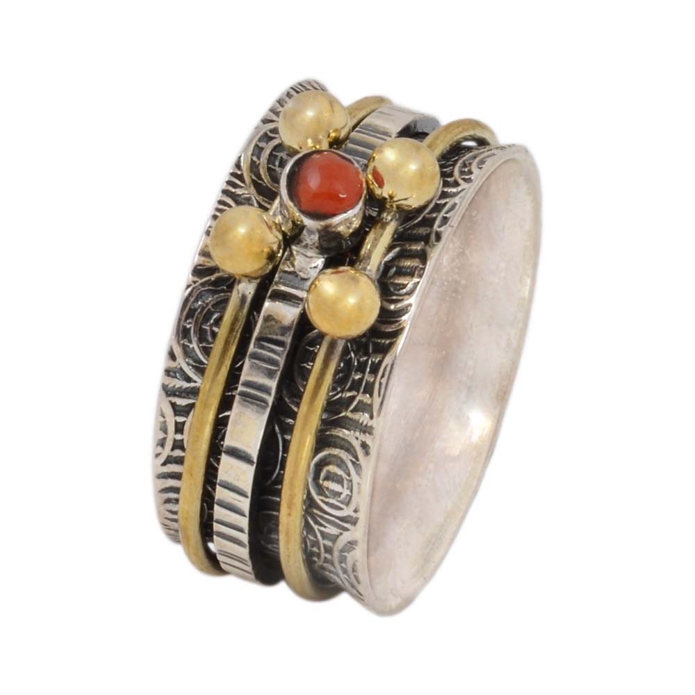 Mix Metal Ball Coral Spinner Ring
